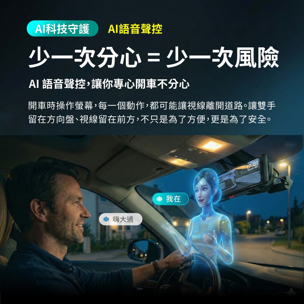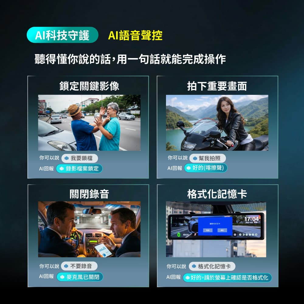 ◆ AI語音聲控,透過台灣口語+模糊指令,控制行車記錄器重要功能