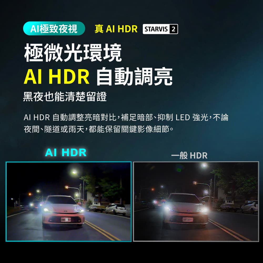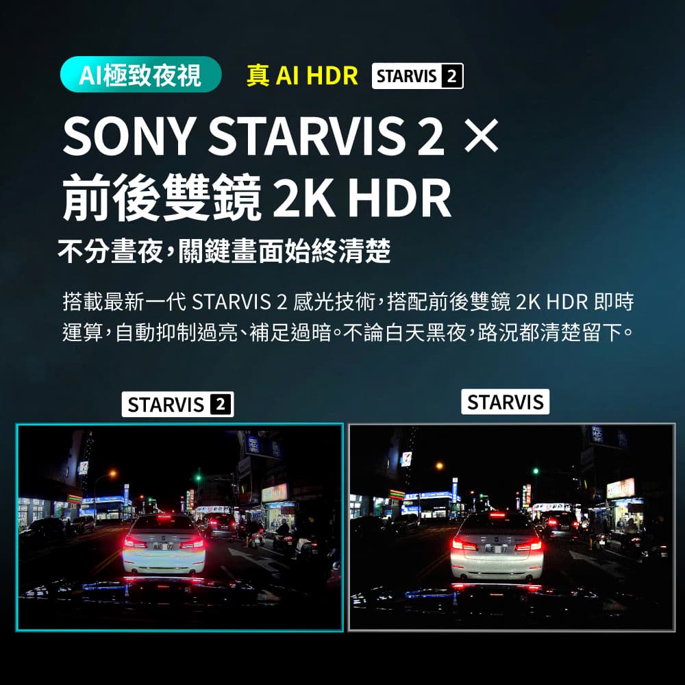 ◆ SONY STARVIS 2 Sensor前後雙鏡全時2K HDR,低光環境也清晰