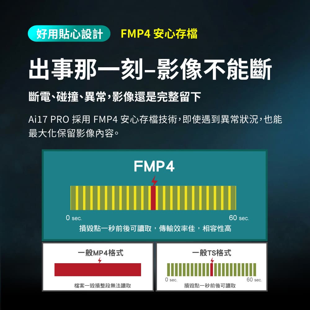 ◆ FMP4結合TS與MP4兩種格式的優點,檔案毀損依然可保存影像