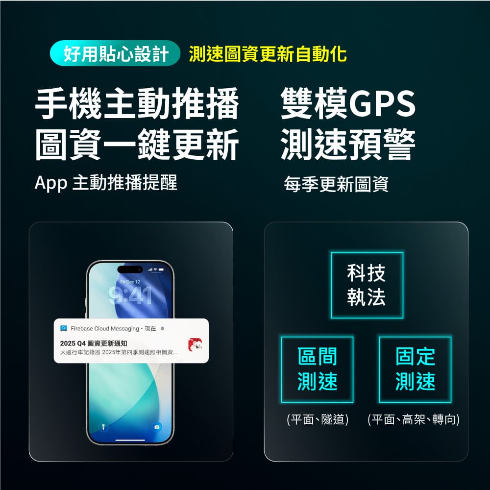 ◆ 圖資更新推播通知,科技執法與區間測速 手機推播通知