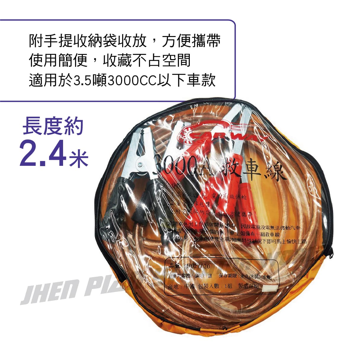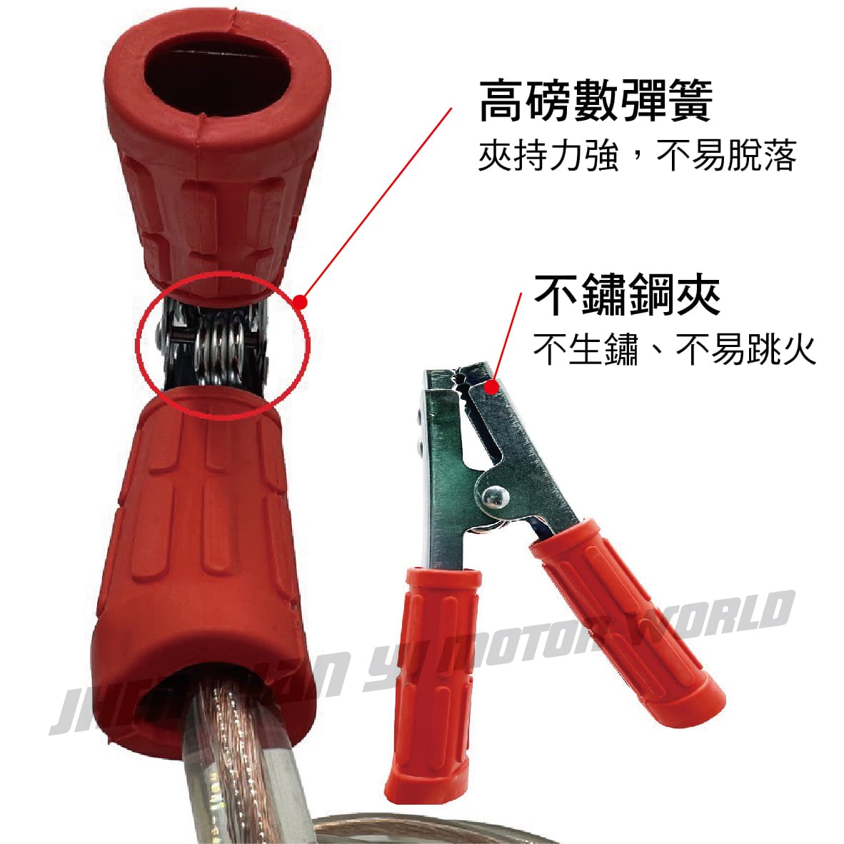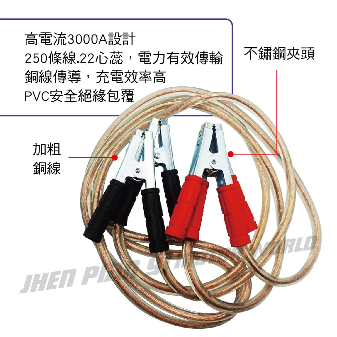 ◆ 高電流1500A設計 ◆ 加粗銅線,電力有效傳輸 ◆ 銅線傳導,充電效率高 ◆ PVC安全絕緣包覆 ◆ 附手提收納袋收放,方便攜帶 ◆ 使用簡便,收藏不占空間 ◆ 適用於2000CC以下車款 ◆ 產品長度約2.5米