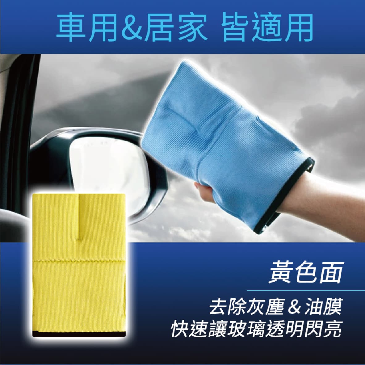 ◆ 黃色面:去除灰塵&油膜,快速讓玻璃透明閃亮