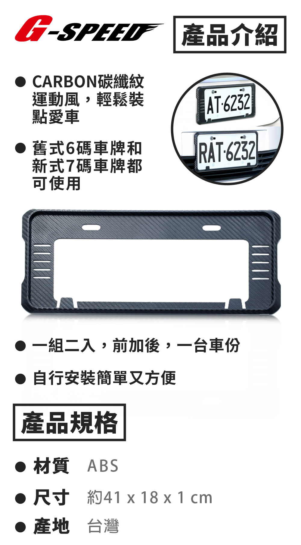 G-SPEED PR-62 碳纖維車牌框(2入)