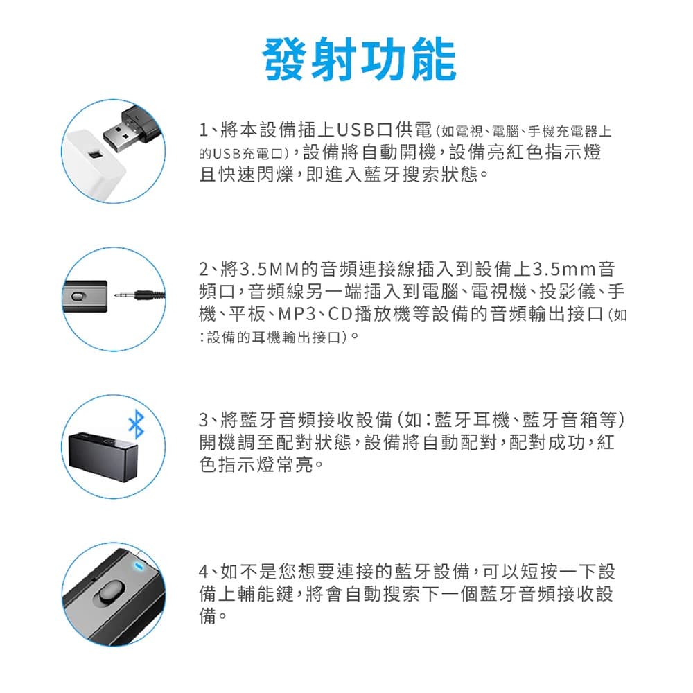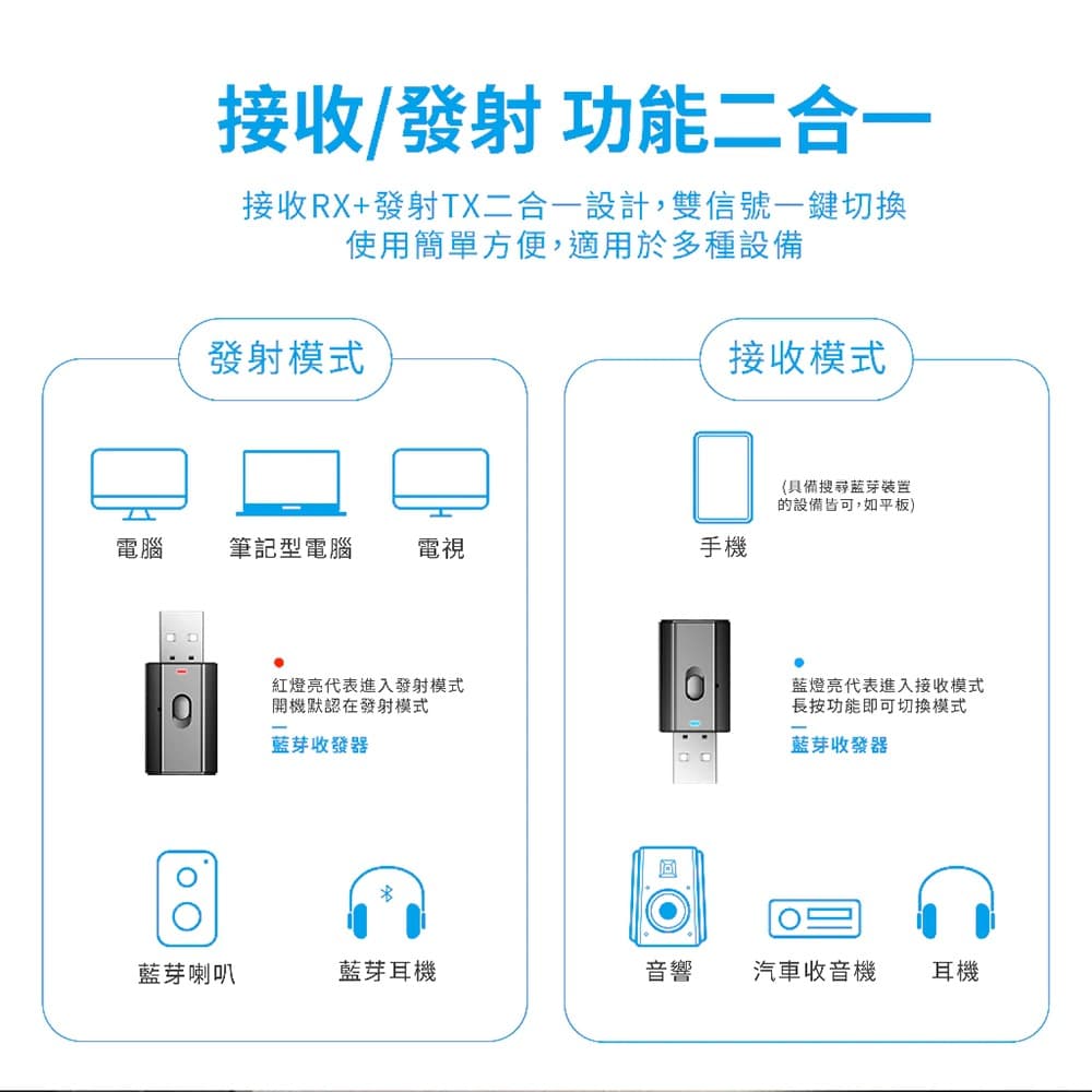 ◆ 按鈕設計,輕鬆切換發射/接收模式,滿足各種使用需求