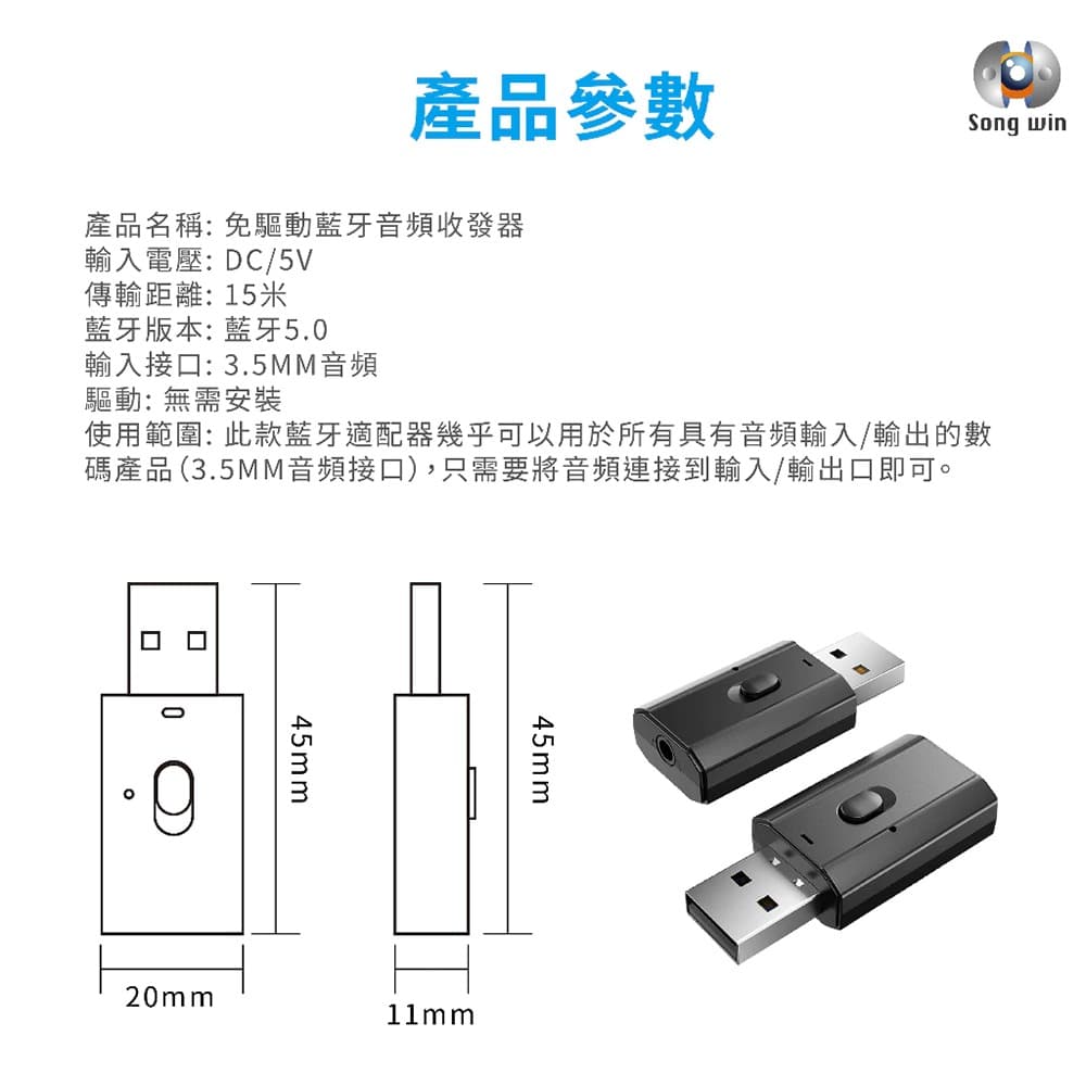 Songwin嚴選 GS-300 免驅動藍牙音頻收發器