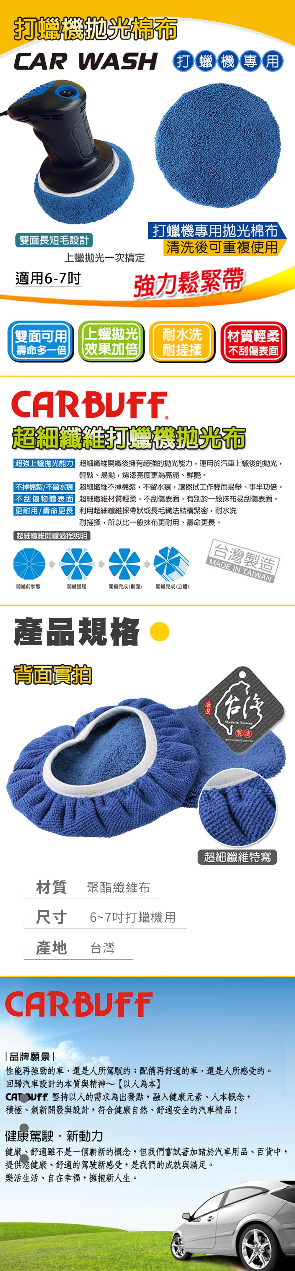 CARBUFF車痴 MH-8047 超細纖維打蠟機上蠟拋光布套 (適用6-7吋)