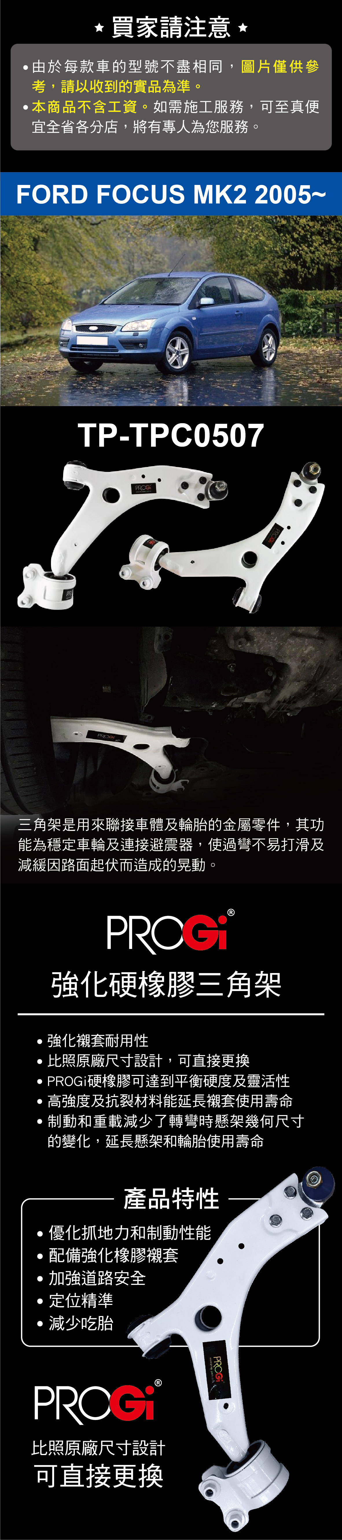 PROGi TP-TPC0507 強化硬橡膠三角架(FORD FOCUS MK2 2005~)(無保固/工資另計/售完為止)