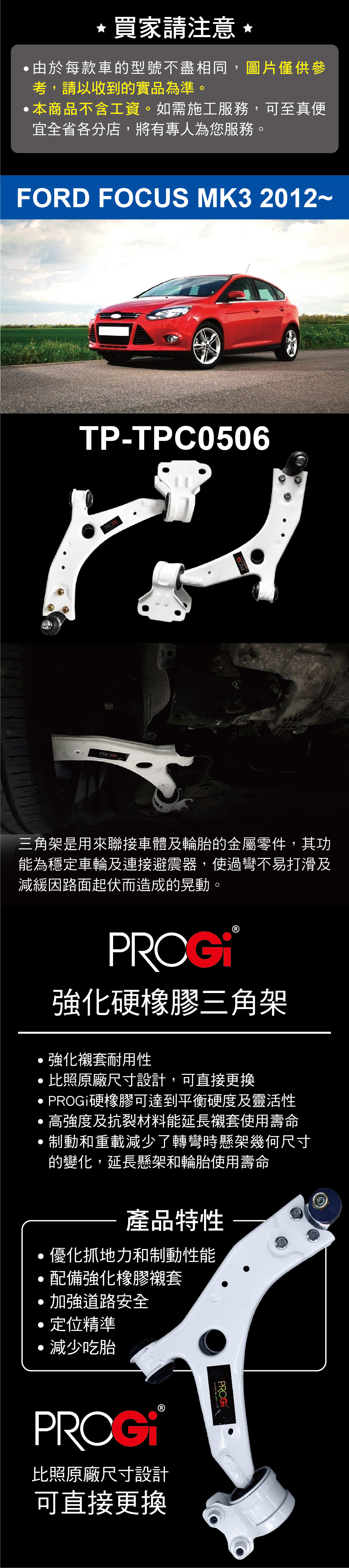 PROGi TP-TPC0506 強化硬橡膠三角架(FORD FOCUS MK3 2012~)(無保固/工資另計/售完為止)