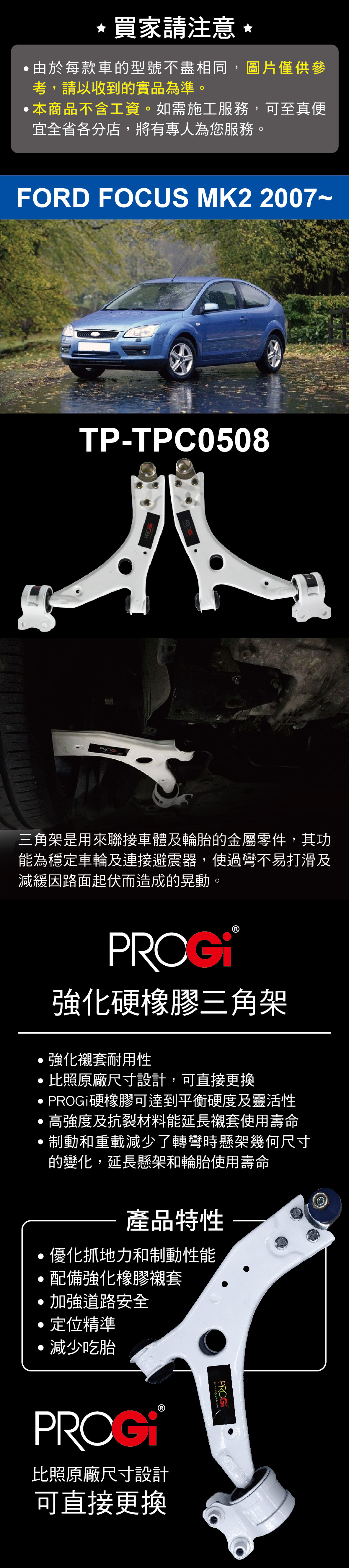 PROGi TP-TPC0508 強化硬橡膠三角架(FORD FOCUS MK2 2007~)(無保固/工資另計/售完為止)