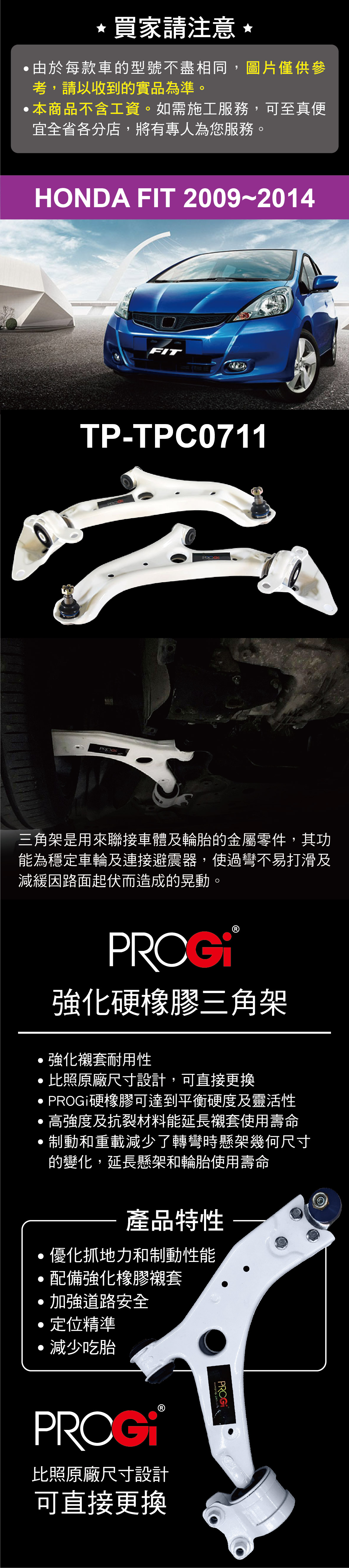 PROGi TP-TPC0711 強化硬橡膠三角架(HONDA FIT 2009~2014)(無保固/工資另計/售完為止)