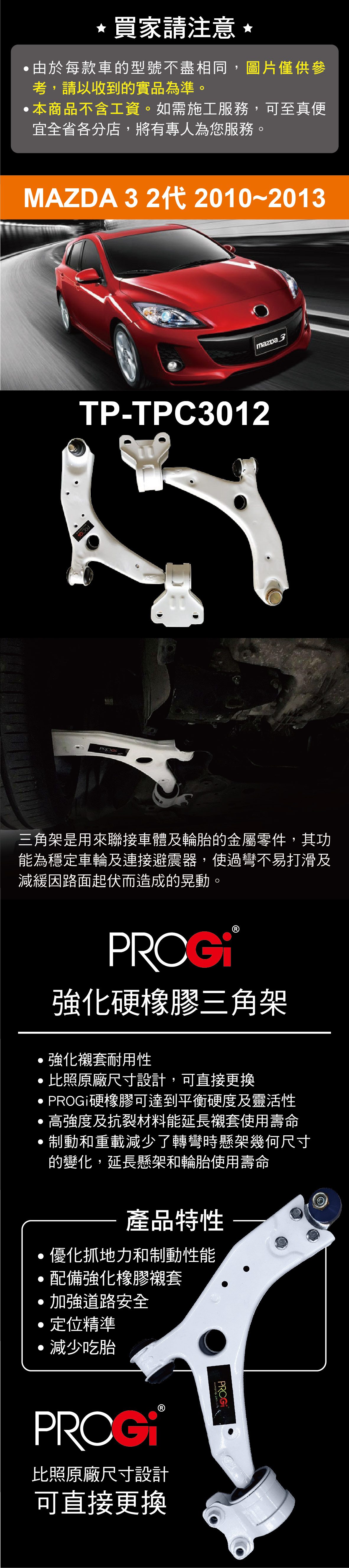 PROGi TP-TPC3012 強化硬橡膠三角架(MAZDA 3 2代 2010~2013)(無保固/工資另計/售完為止)