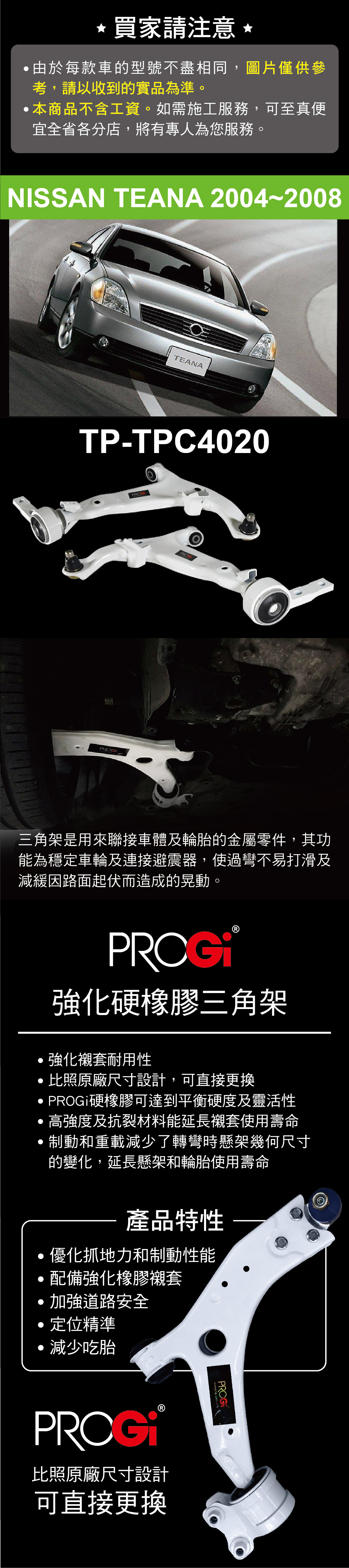 PROGi TP-TPC4020 強化硬橡膠三角架(NISSAN TEANA 2004~2008)(無保固/工資另計/售完為止)