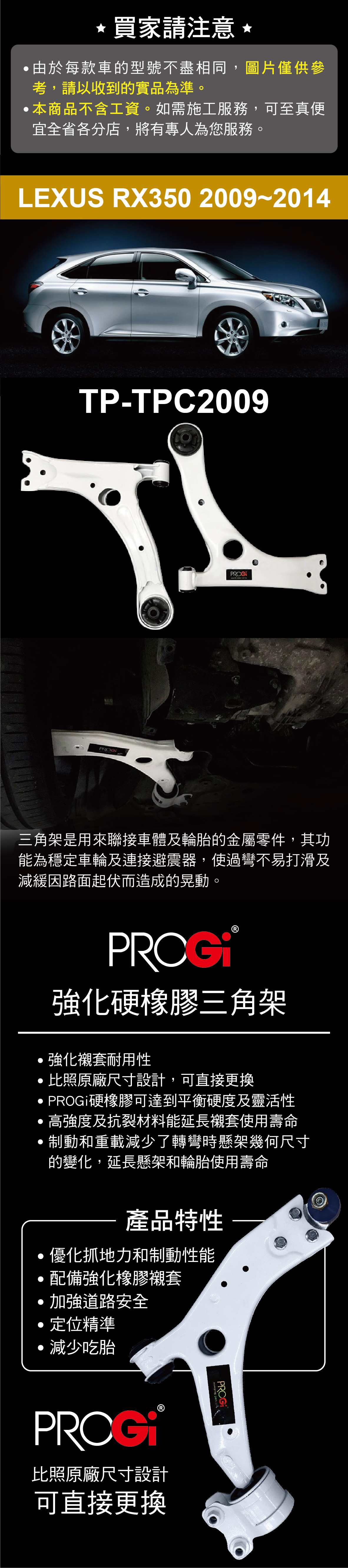 PROGi TP-TPC2009 強化硬橡膠三角架(LEXUS RX350 2009~2014)(無保固/工資另計/售完為止)