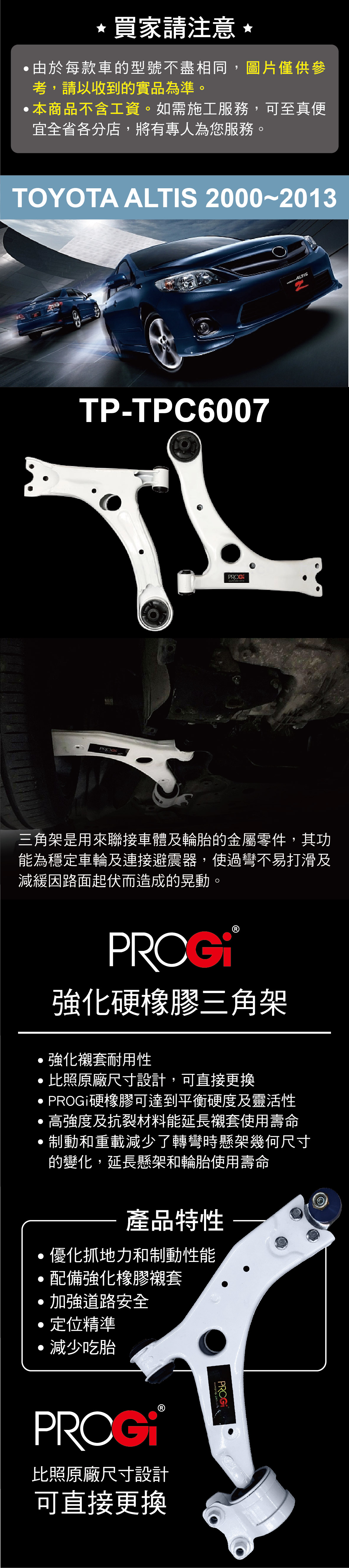 PROGi TP-TPC6007 強化硬橡膠三角架(TOYOTA ALTIS 2000~2013) (無保固/工資另計/售完為止)