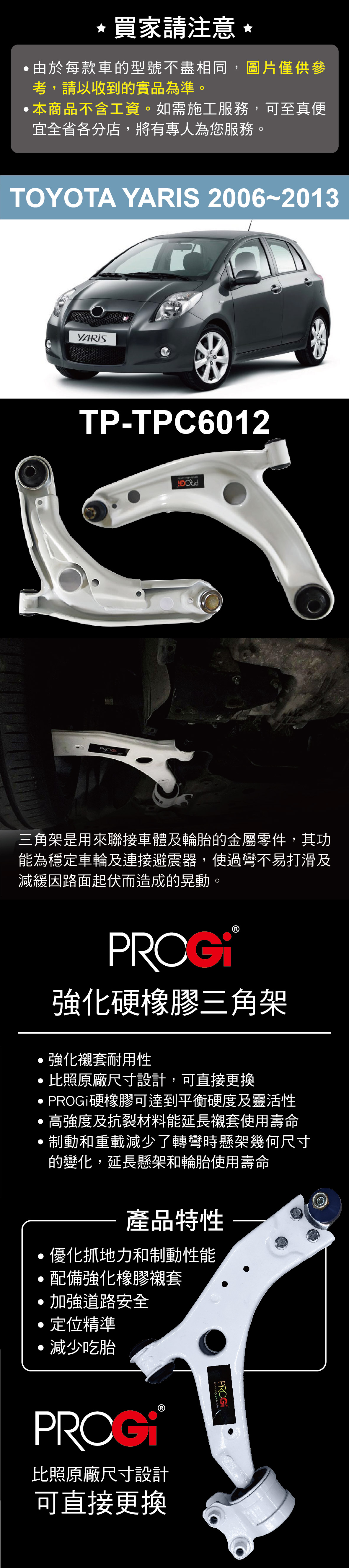 PROGi TP-TPC6012 強化硬橡膠三角架(TOYOTA YARIS 2006~2013)(無保固/工資另計/售完為止)