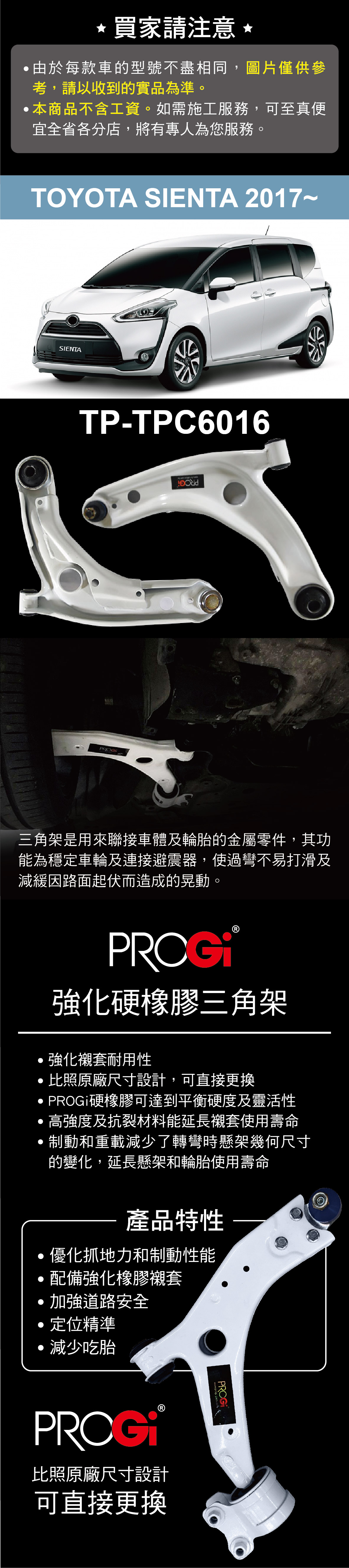 PROGi TP-TPC6016 強化硬橡膠三角架(TOYOTA SIENTA 2017~)(無保固/工資另計/售完為止)
