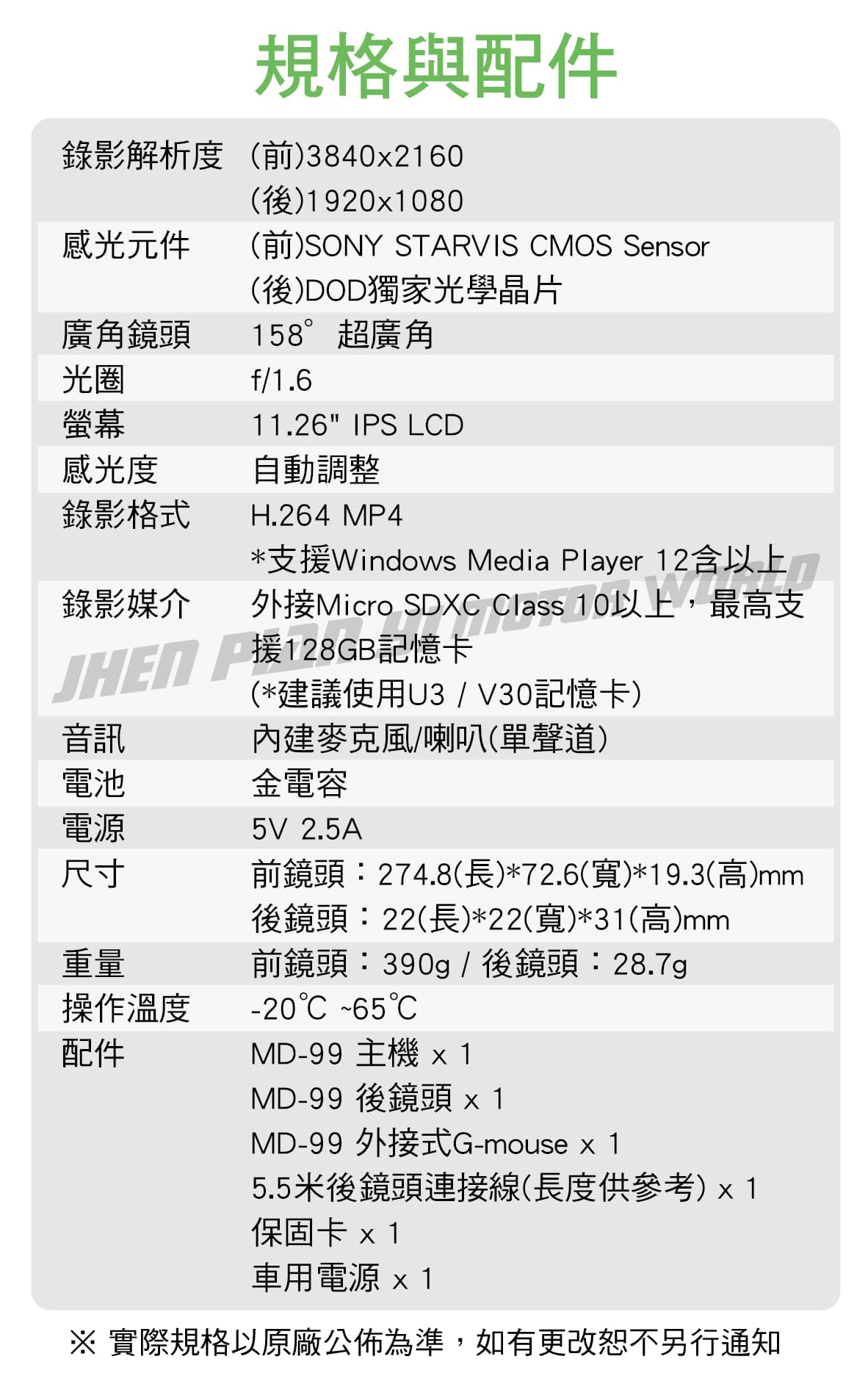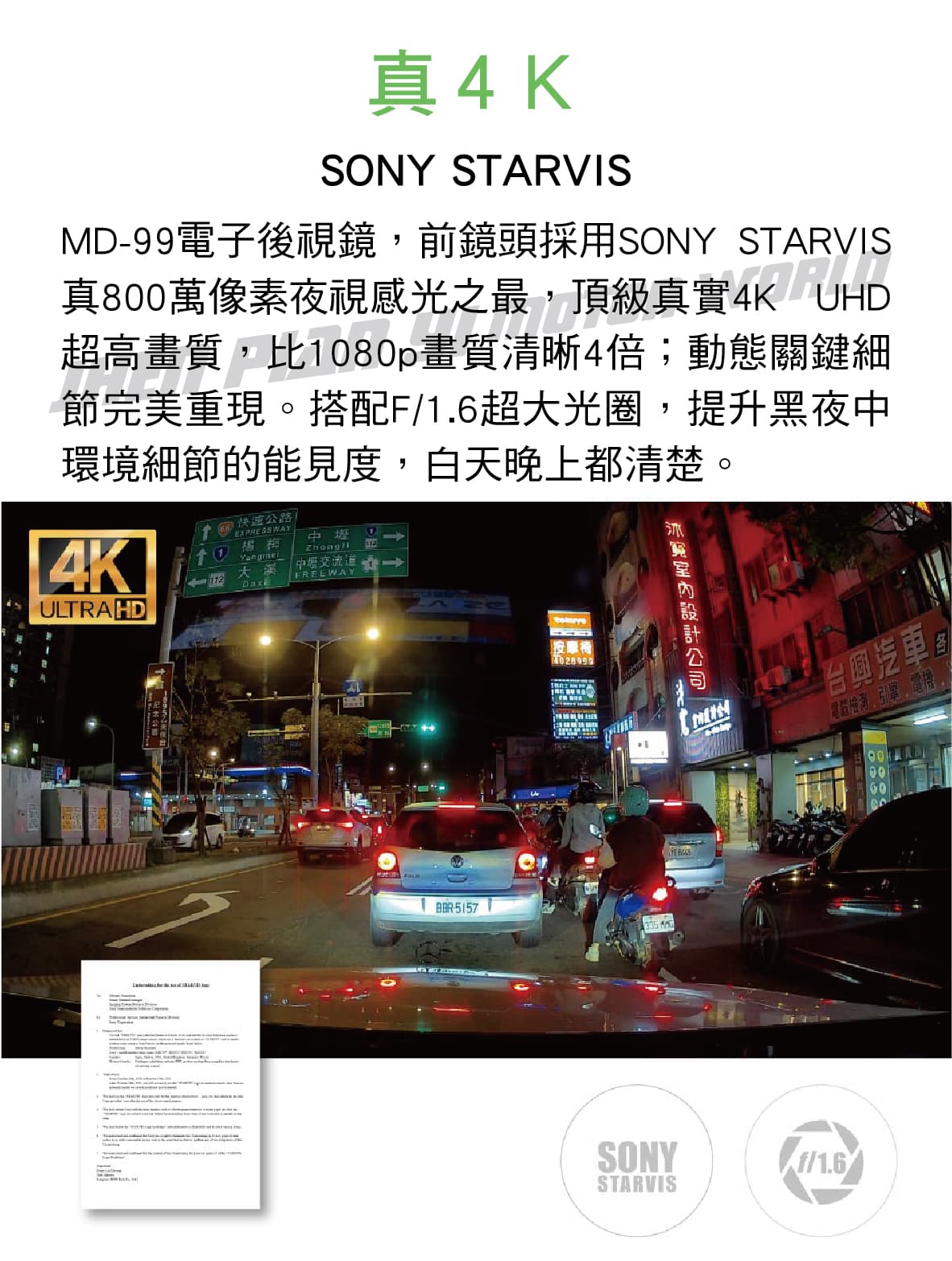 ◆ 前鏡頭採用SONY STARVIS真800萬像素夜視感光之最