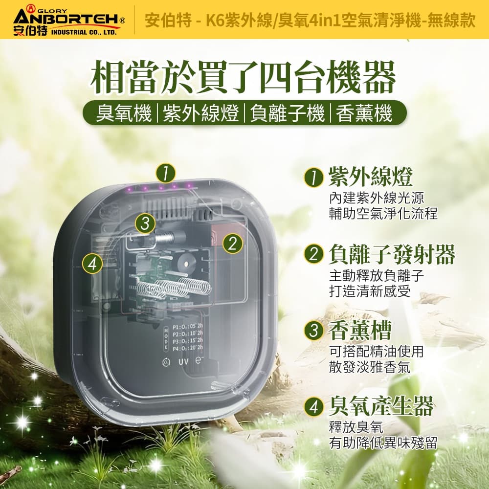 ANBORTEH安伯特 ABT-E102 神波源 K6紫外線臭氧4合1空氣清淨機(無線款)