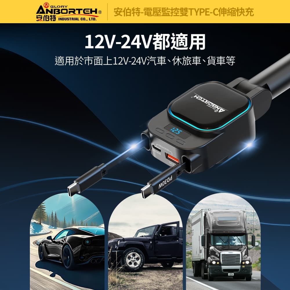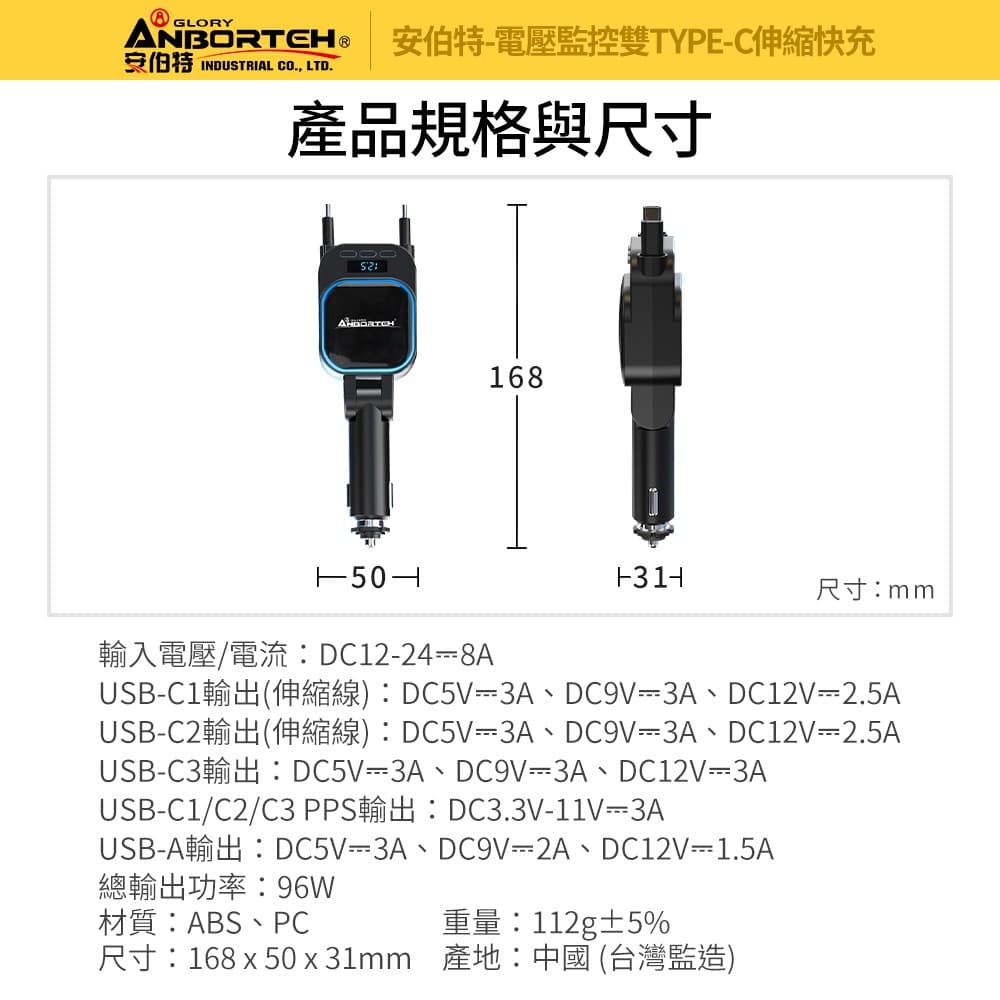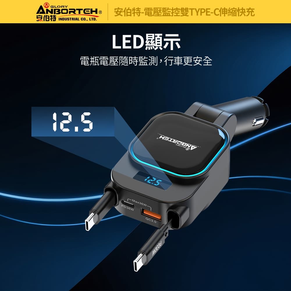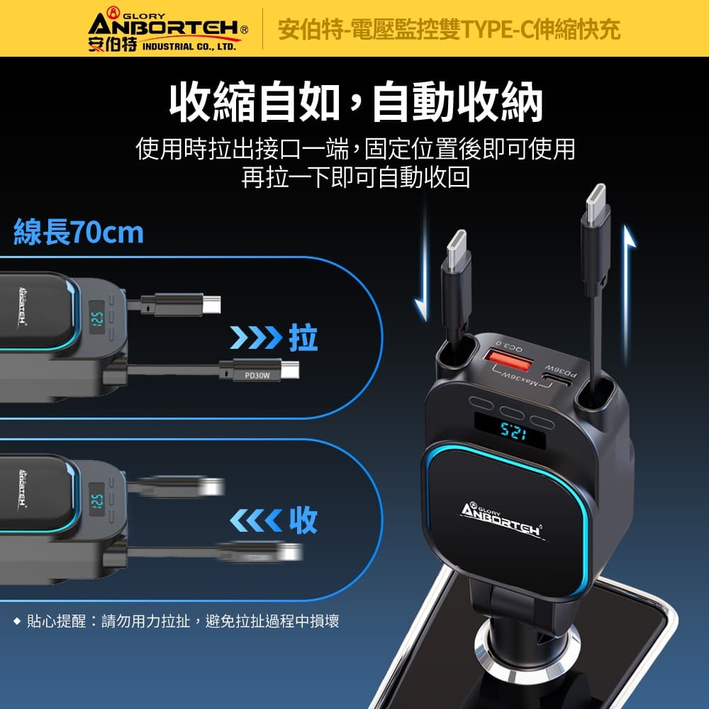 ANBORTEH安伯特 ABT-E103 電壓監控雙TYPE-C伸縮車充