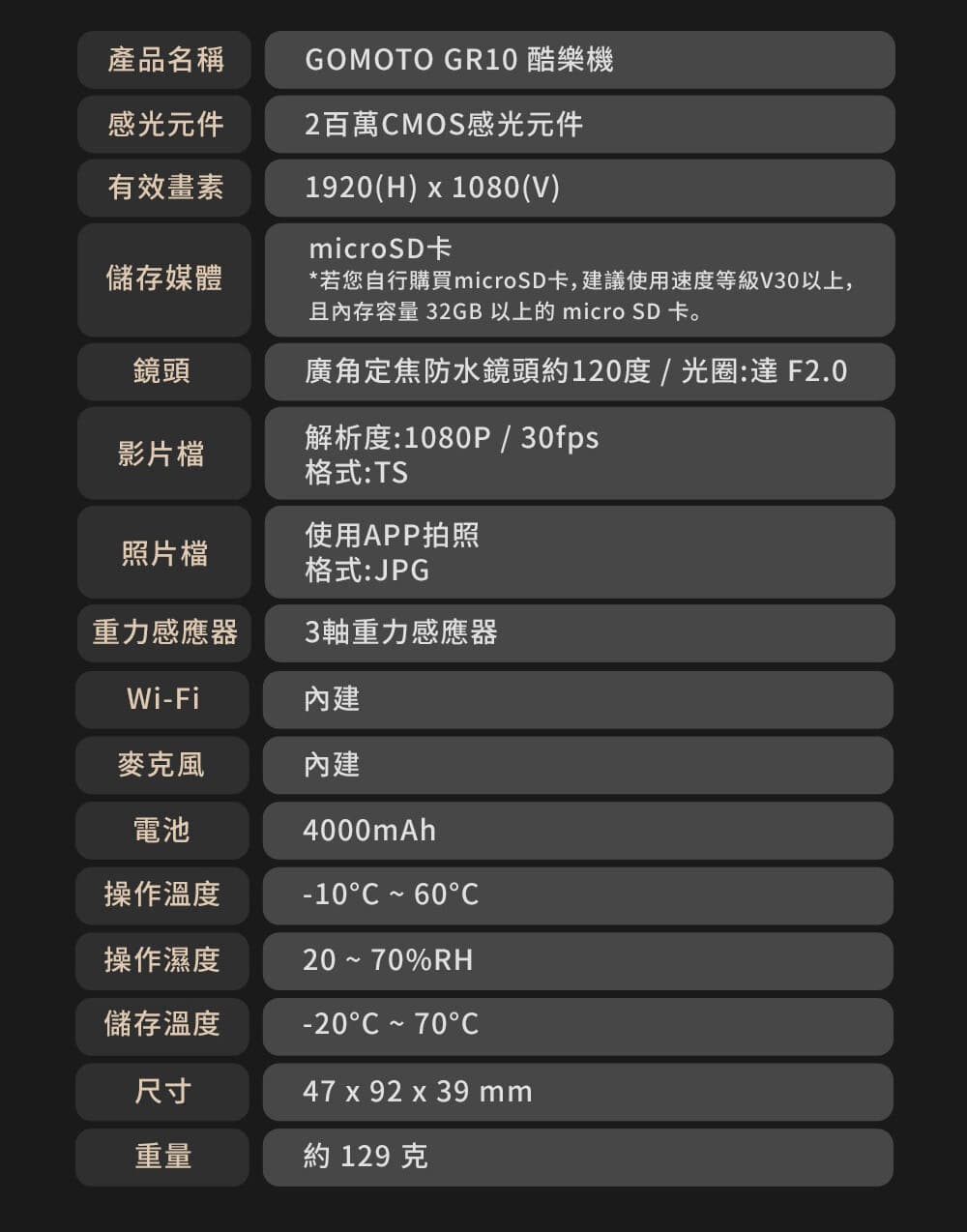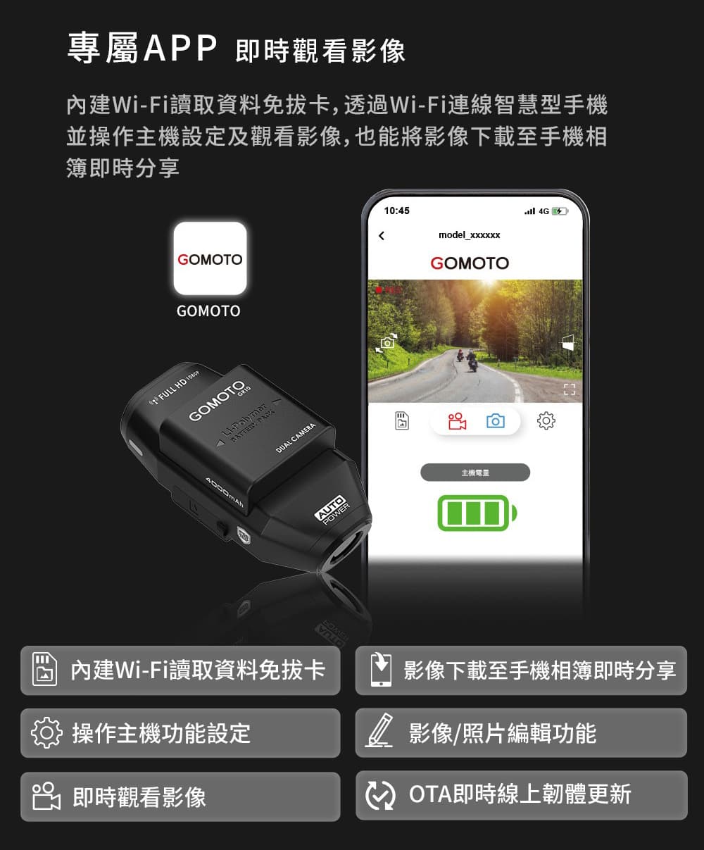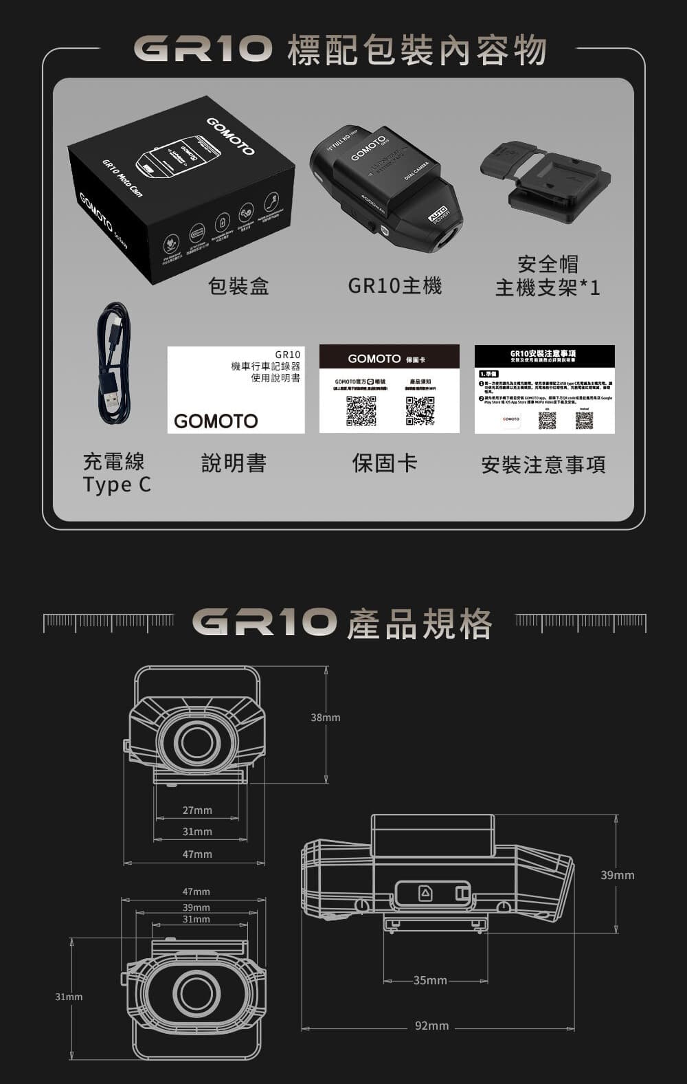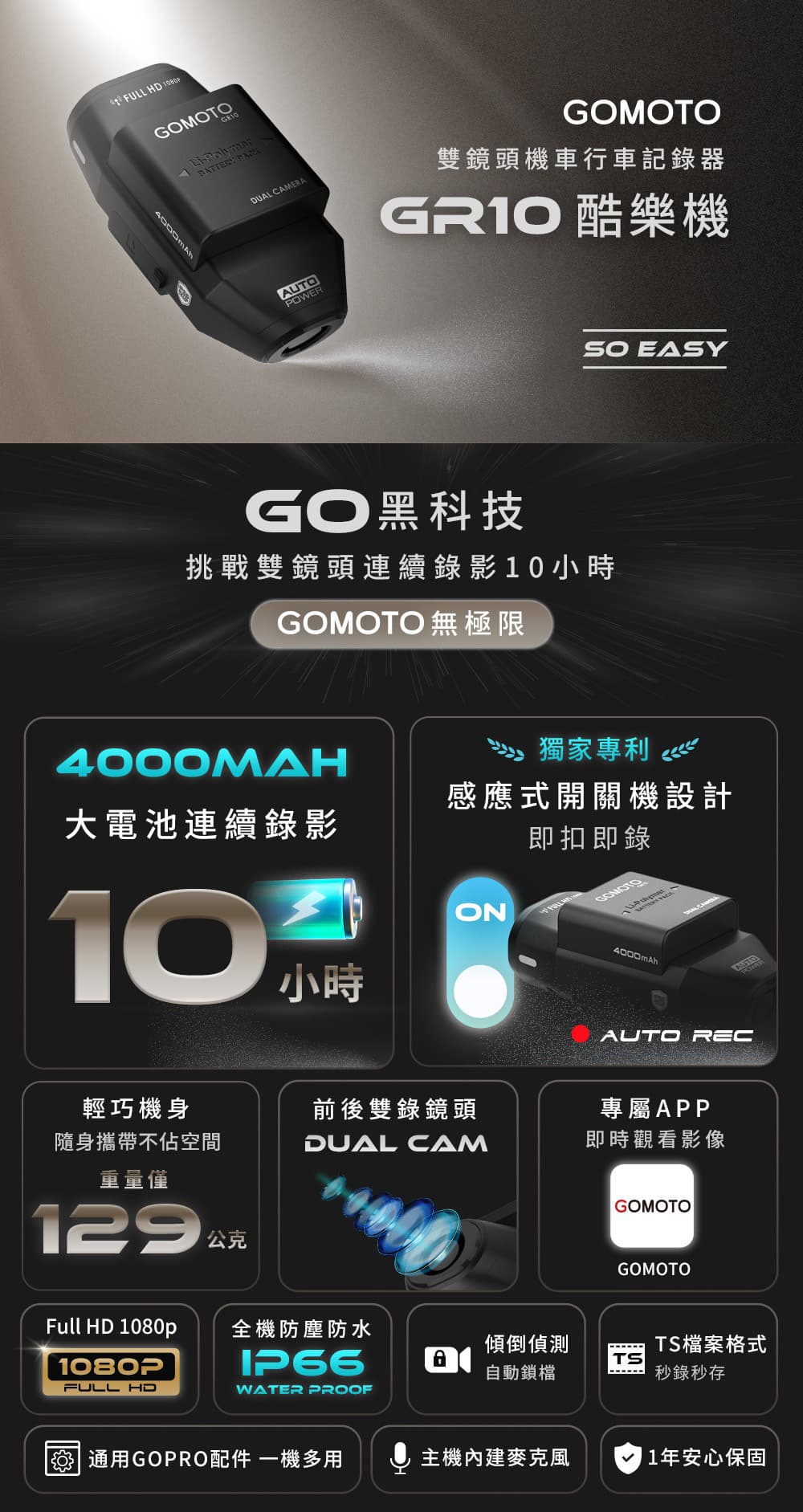 GOMOTO GR10酷樂機 雙鏡頭機車行車記錄器-消光黑