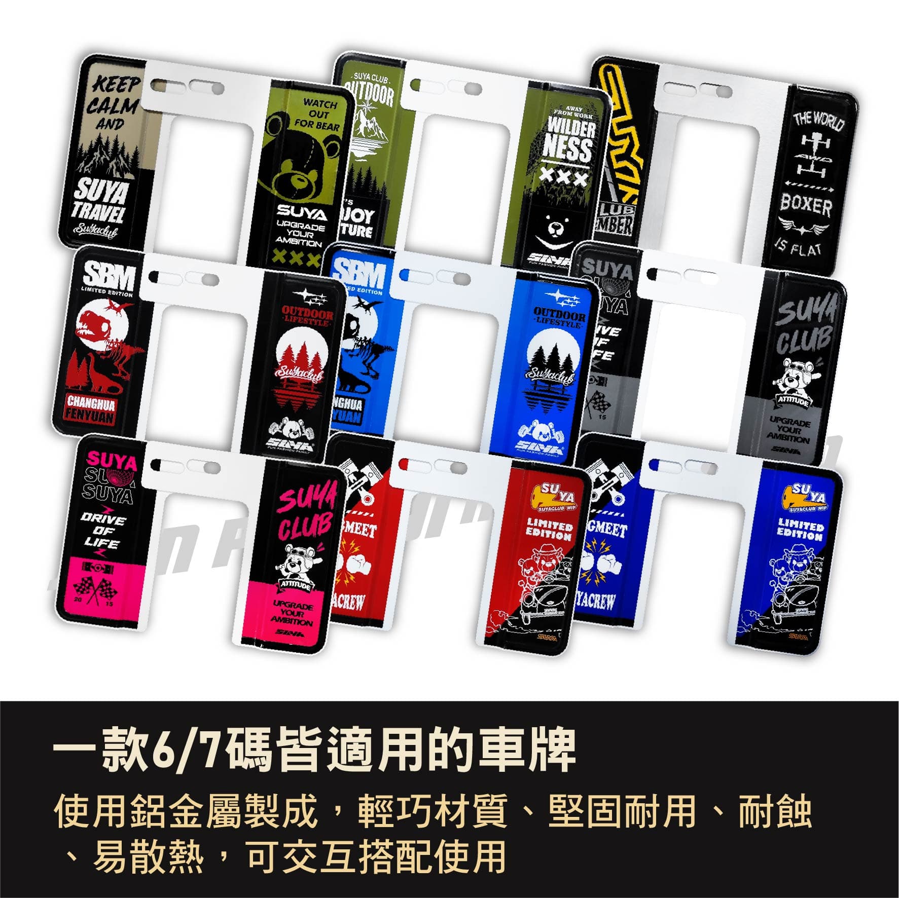 ‧一款6/7碼皆適用的車牌 ‧使用鋁金屬製成,輕巧材質、堅固耐用、耐蝕、易散熱,可交互搭配使用 ‧簡約豪放的造型設計 ‧為愛車添增不一樣的風采,成為路上眾人焦點 ‧獨特表面印刷塗層 ‧表面採用UV耐曝曬多層次印刷,增加耐用度,久用依然如新