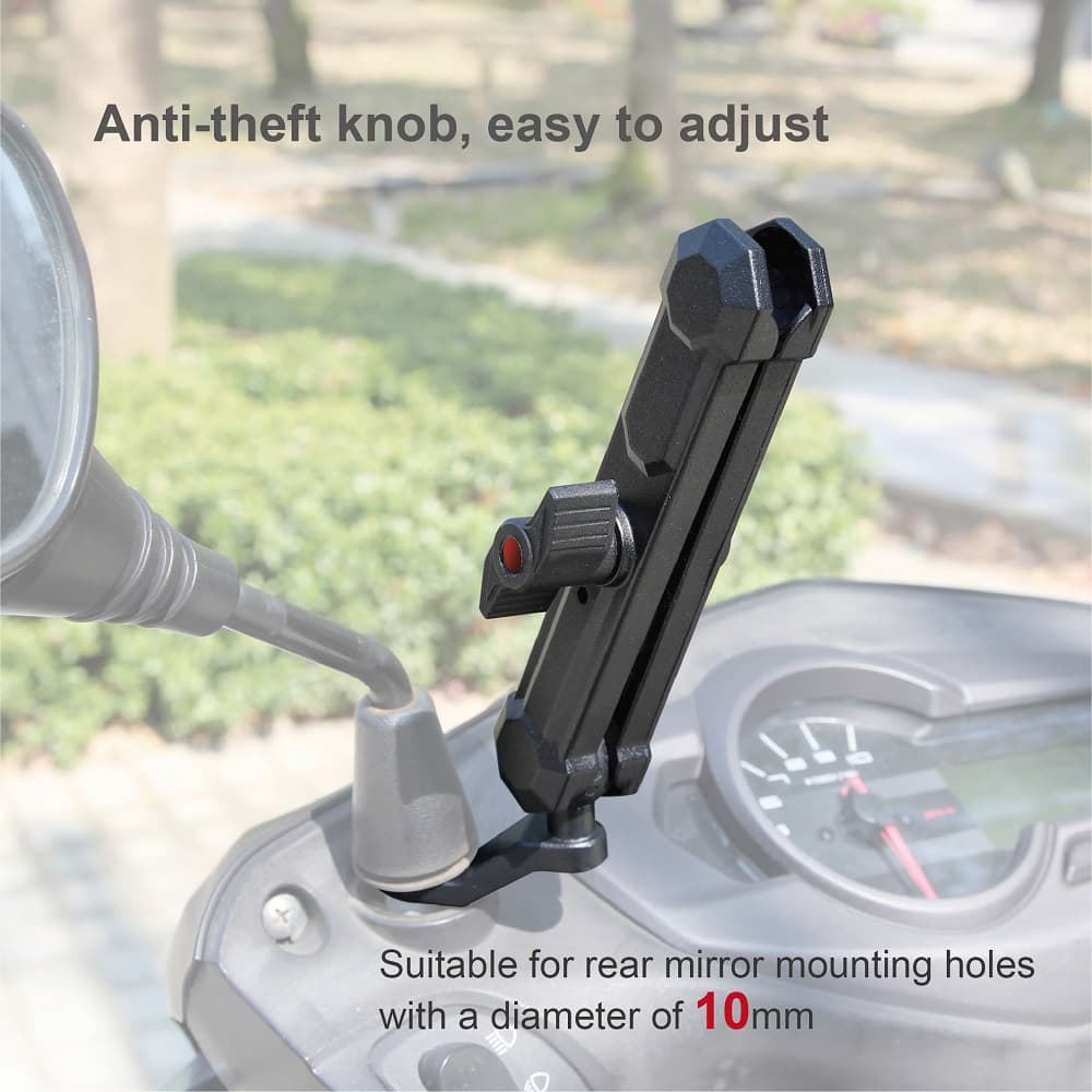 ◆ 適合後照鏡安裝,孔直徑10mm內使用 ◆ 15公分長臂合金支架 ◆ 直徑1英吋合金包膠球頭 ◆ 防盜旋鈕、易於調整 ◆ 可配合墊高螺絲使用