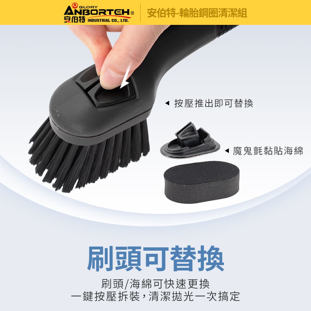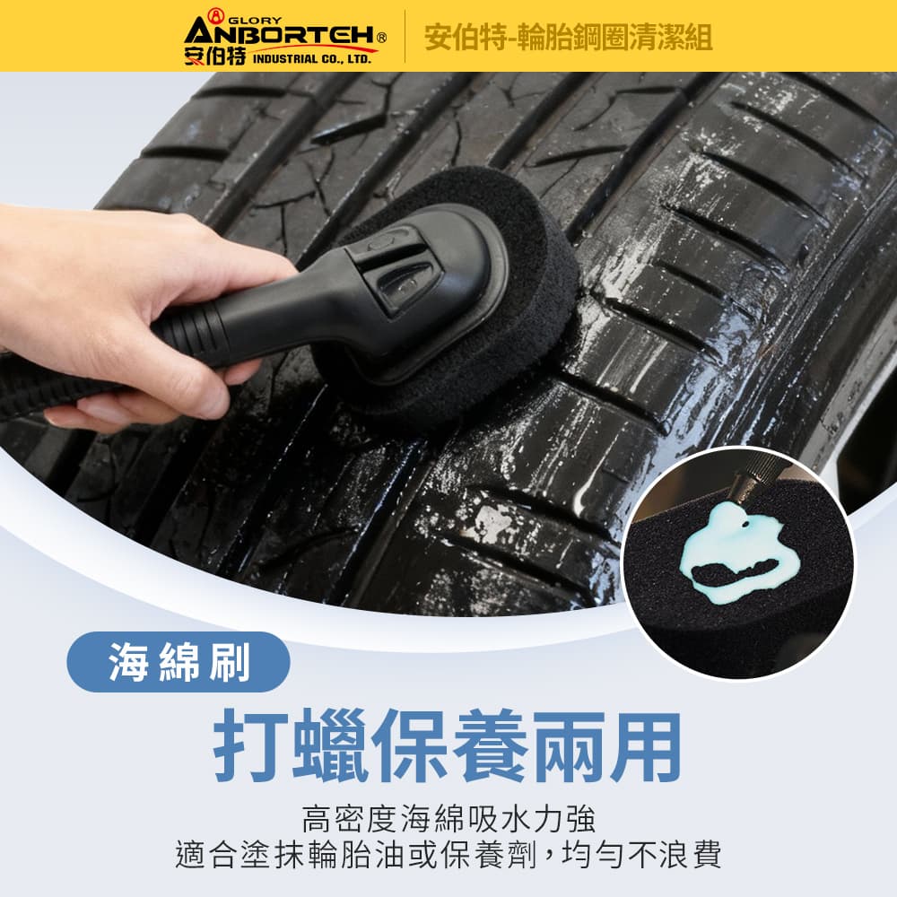 ANBORTEH安伯特 ABT-D026 輪胎鋼圈清潔組(輪胎刷+鋼圈刷+海綿組)