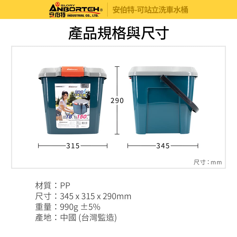 ANBORTEH安伯特 ABT-D020 極淨專家 可站立洗車水桶18L