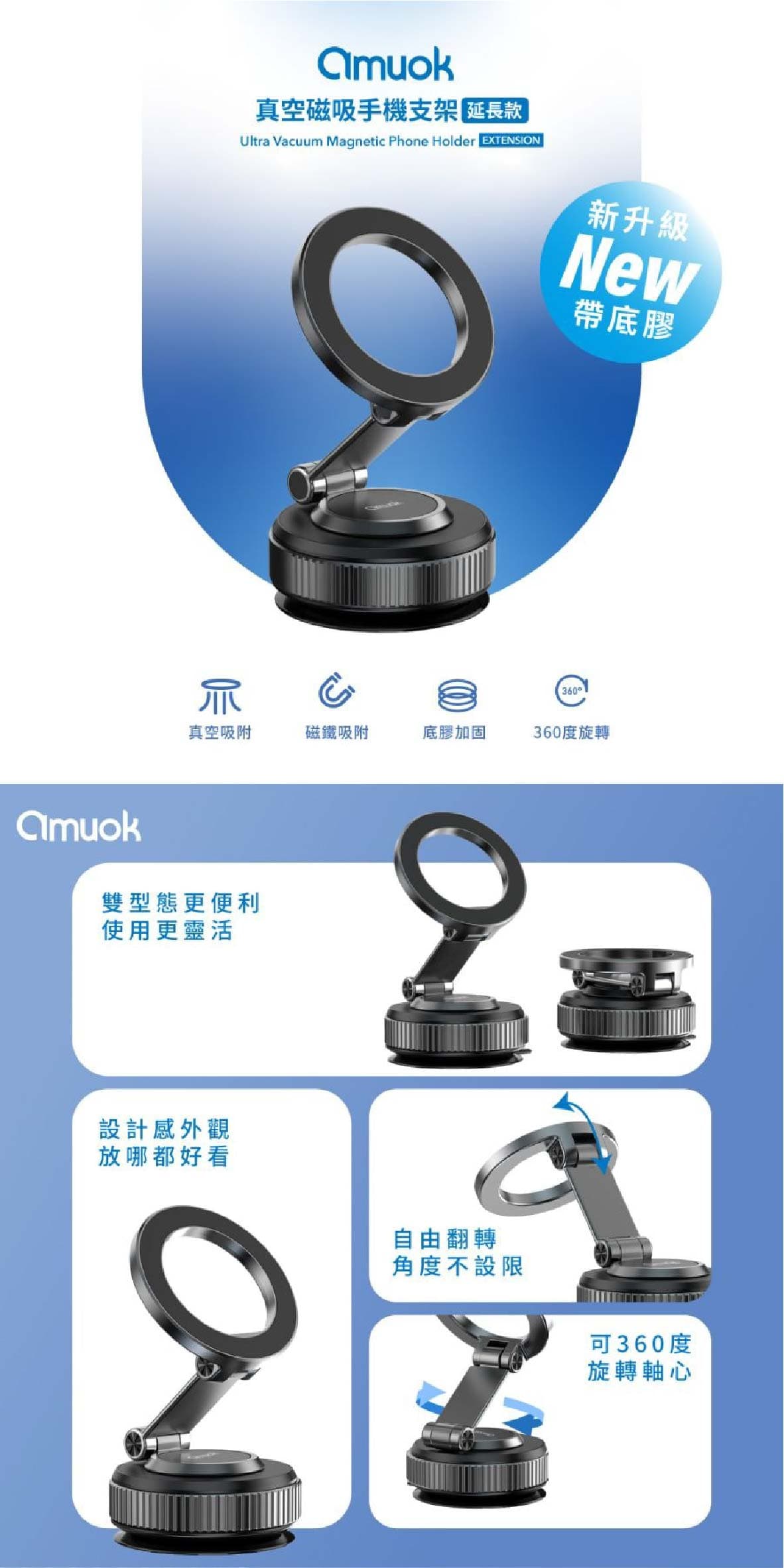 ‧網紅推薦熱銷款 ‧超真空手動旋轉排氣 ‧奈米底膠吸盤耐高溫、低溫 ‧水洗膠清水沖洗可重複利用 ‧皮革、玻璃、牆面都能吸附 ‧升級強磁穩固牢靠 ‧自由翻轉角度不設限 ‧摺疊收納超好攜帶 ‧原廠一年保固