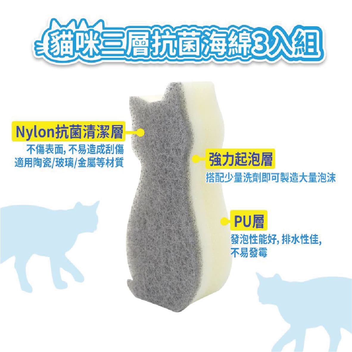 ◆ 最新Nylon抗菌清潔層,不同於傳統菜瓜布的研磨層 ◆ 不傷表面、不易造成刮傷,可安心使用於陶瓷/玻璃/金屬等材質 ◆ 中層為強力起泡層,搭配一點點洗劑即可製造許多泡沫,省錢又環保 ◆ 輕鬆除去油汙、水垢、茶垢、黴菌等陳年髒汙 ◆ PU層發泡性能好,排水性佳,不易發霉 ◆ 浴室、廚房、居家清潔等必備產品 ◆ 速乾材質不易造成表面發霉、水垢產生