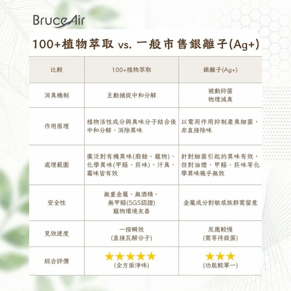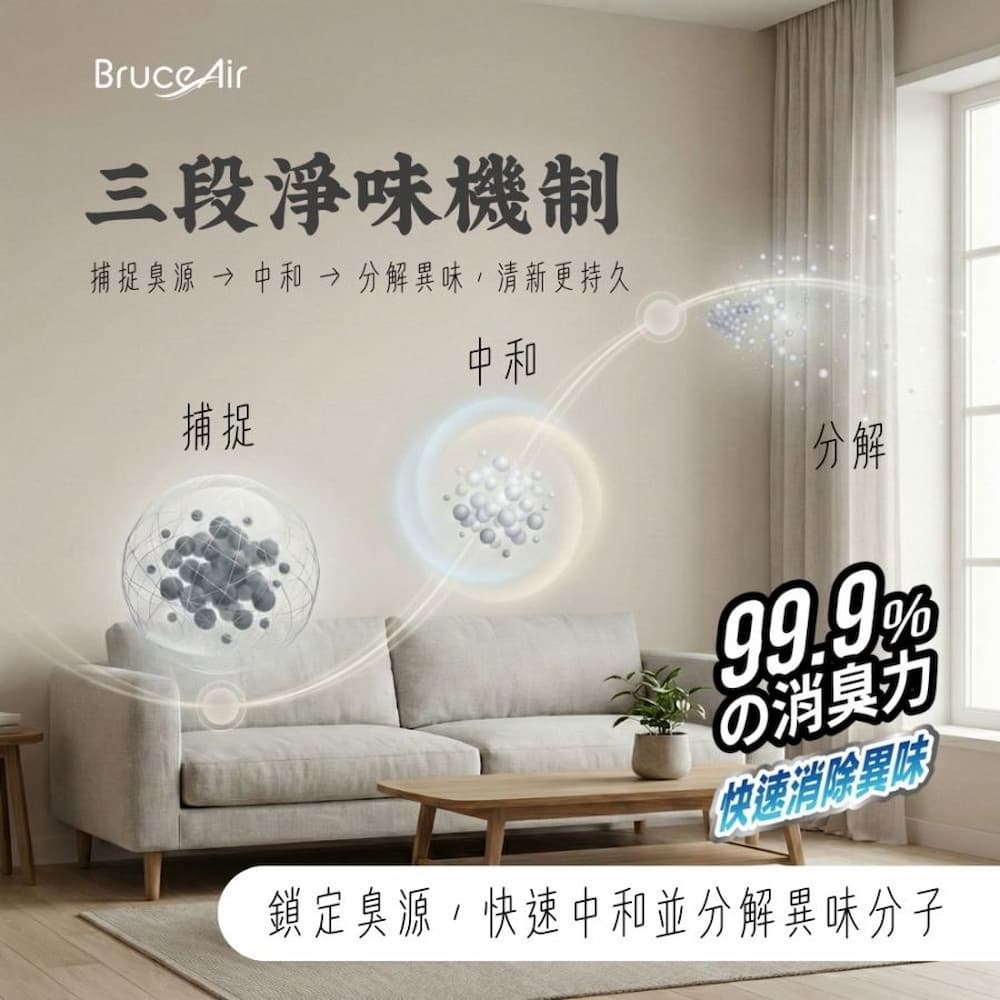 ◆ 三段淨味機制,捕捉異味、中和分解、空氣清新 ◆ 通過SGS檢驗,無酒精、無甲醛、無重金屬 ◆ 一按瞬間去除異味,快速恢復清新空間 ◆ 專利配方,釋放淨味分子,加速除味效果 ◆ 嚴選100+種天然植物萃取,有效分解異味分子 ◆ 溫和無刺激、不嗆鼻,對人體與寵物環境友善 ◆ 層層瓦解異味根源,還原清新空氣 ◆ 淡淡植萃香,讓居家、車內環境更舒適自在 ◆ 台灣製造