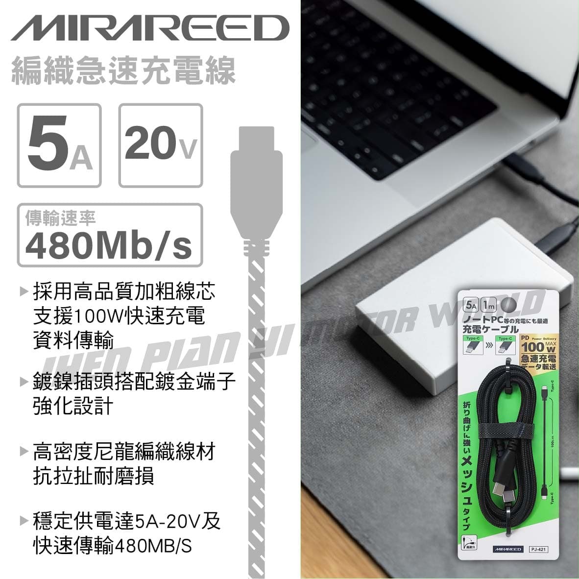 MIRAREED PJ-421 急速充電編織傳輸線 Type-C to C 100W