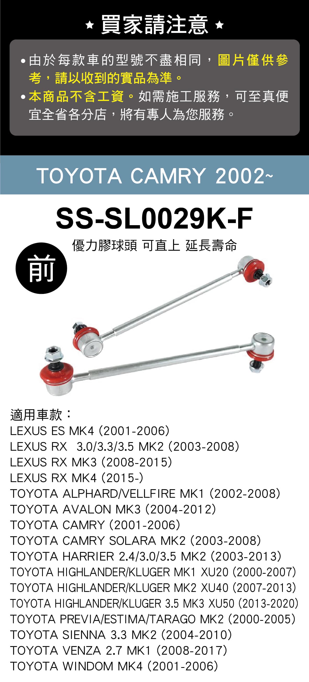 [出清]PROGi SS-SL0029K-F 優力膠原廠型李仔串-前(TOYOTA CAMRY 2002~)(無保固/工資另計/售完為止)