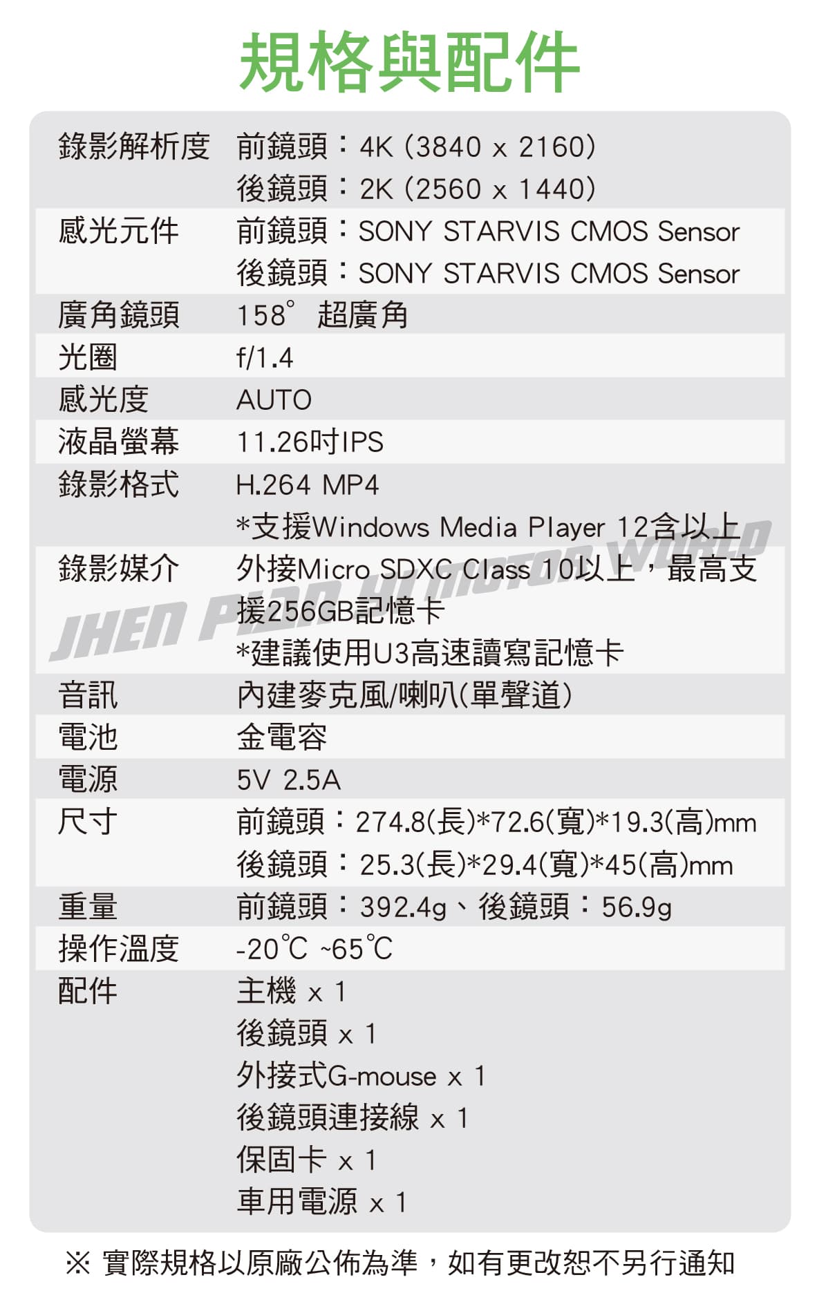 ◆ 真實4K前鏡頭搭配2K防水後鏡頭