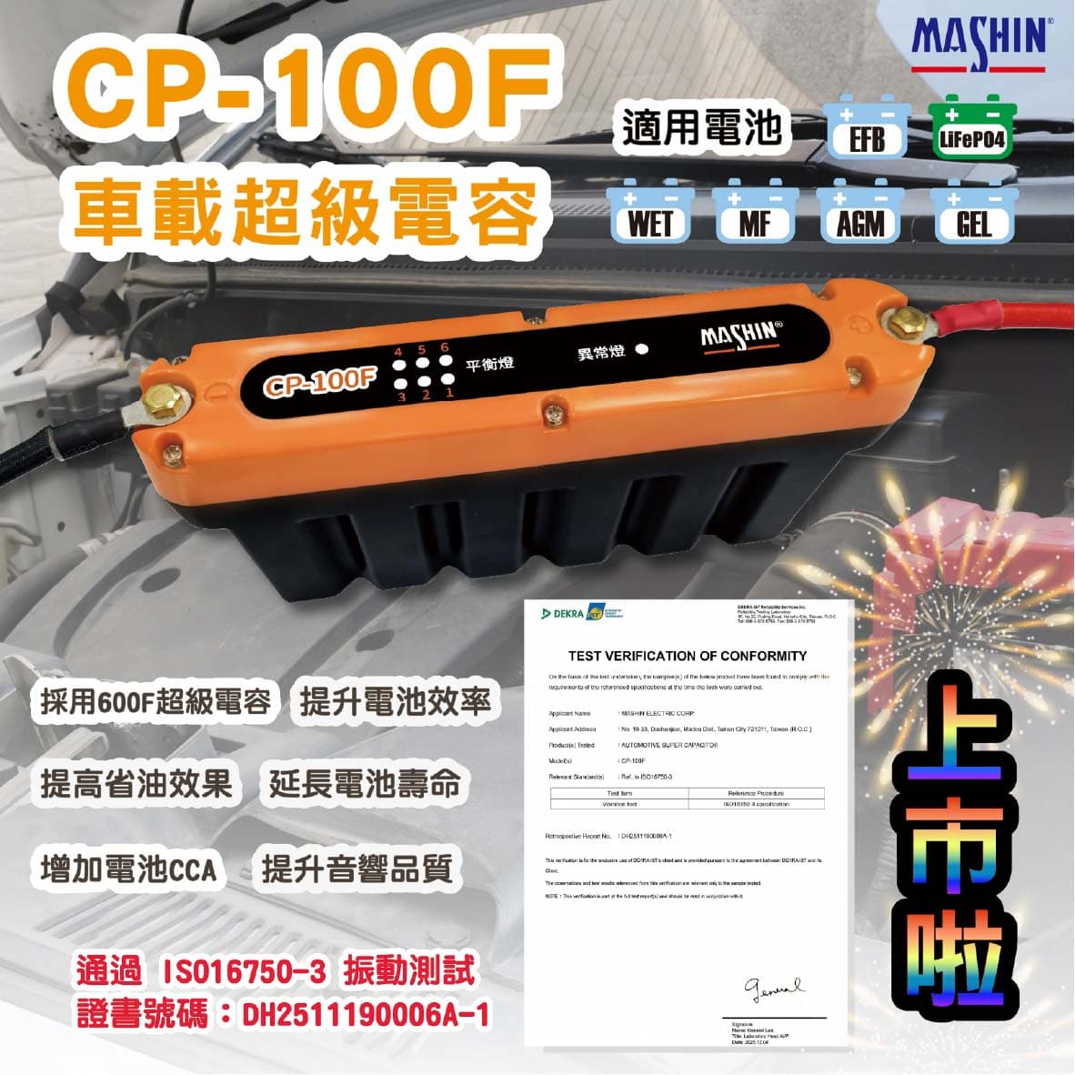 ‧採用600F超級電容 ‧提高省油效果 ‧增加電池CCA ‧延長電池壽命 ‧提升電池效率 ‧提升音響品質