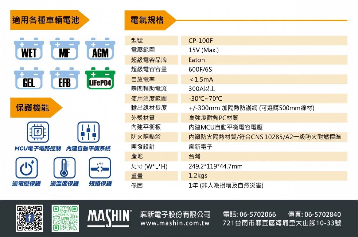 MASHIN麻新 CP-100F 車載超級電容