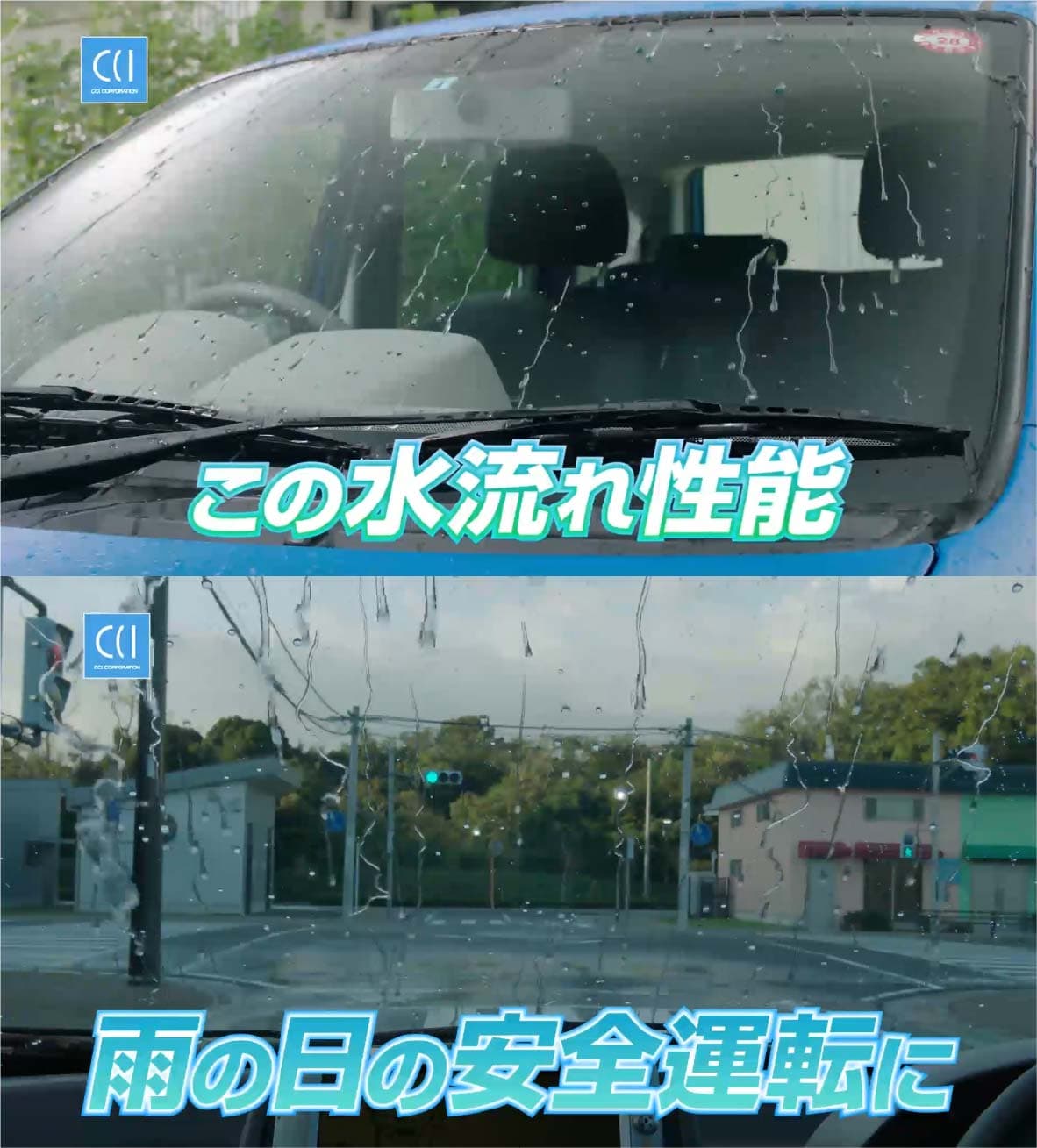 ‧日本CCI專利長效氟素披膜配方,雨中行駛車速達40公里以上時,雨滴快速彈飛,不留水痕