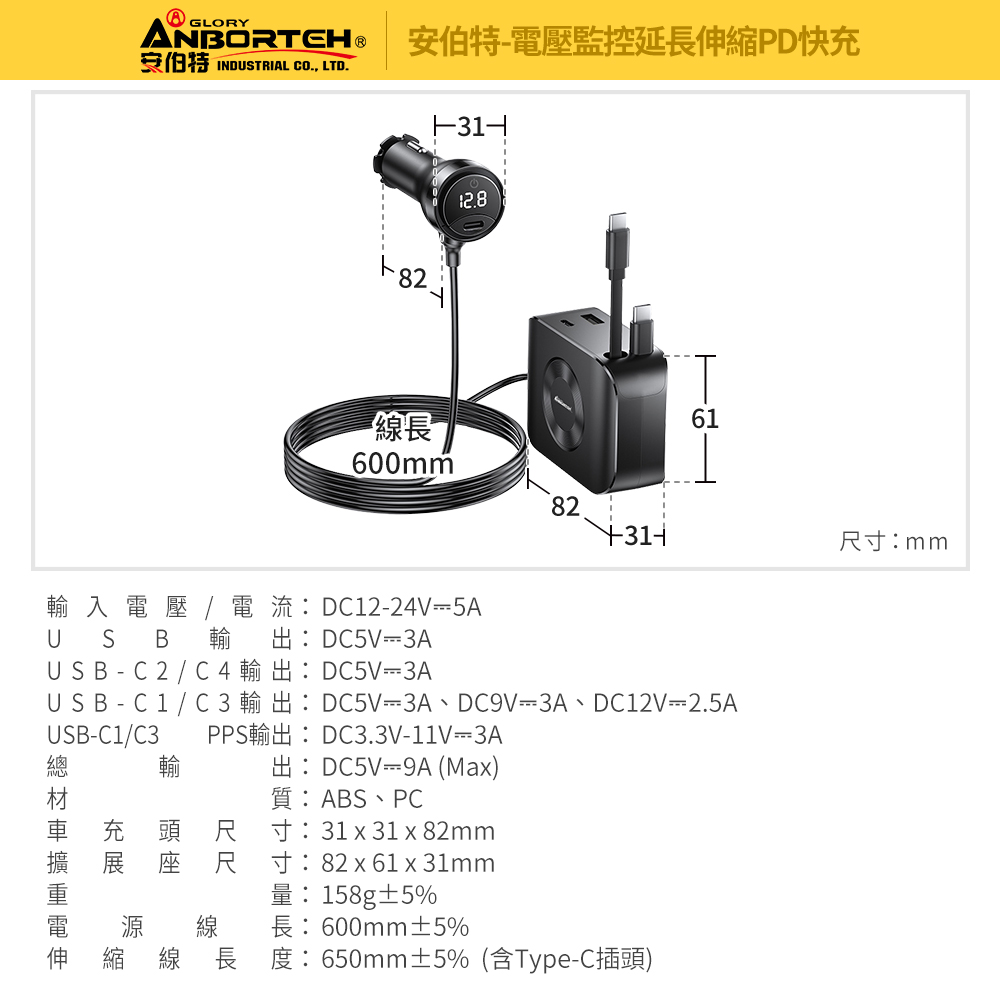 ANBORTEH安伯特 ABT-E631 電壓監控延長伸縮PD快充