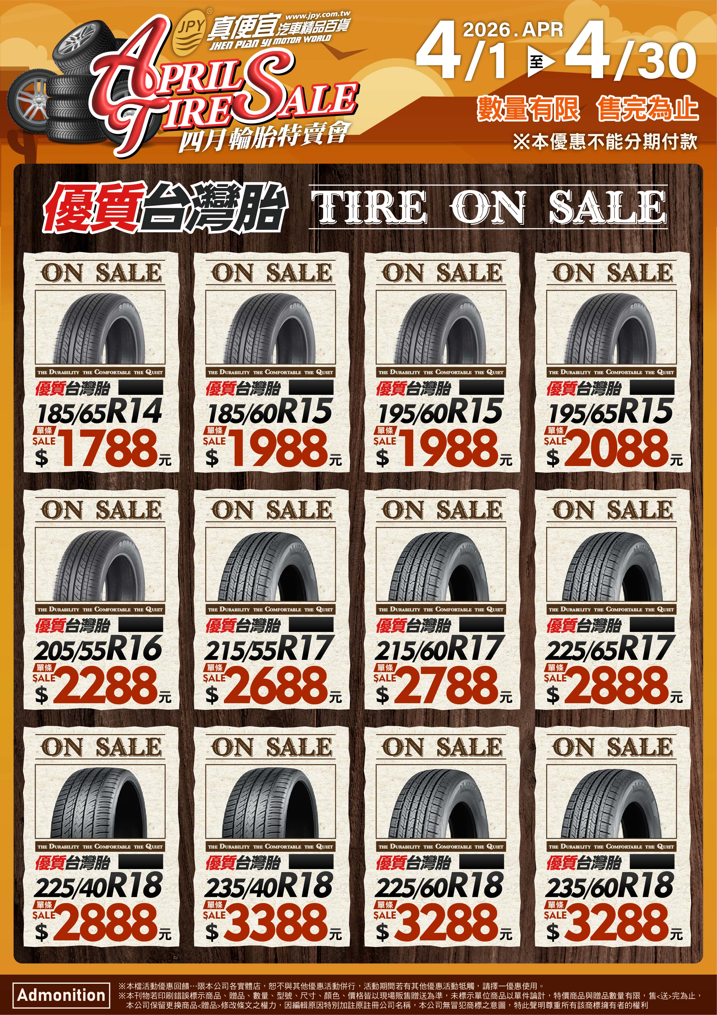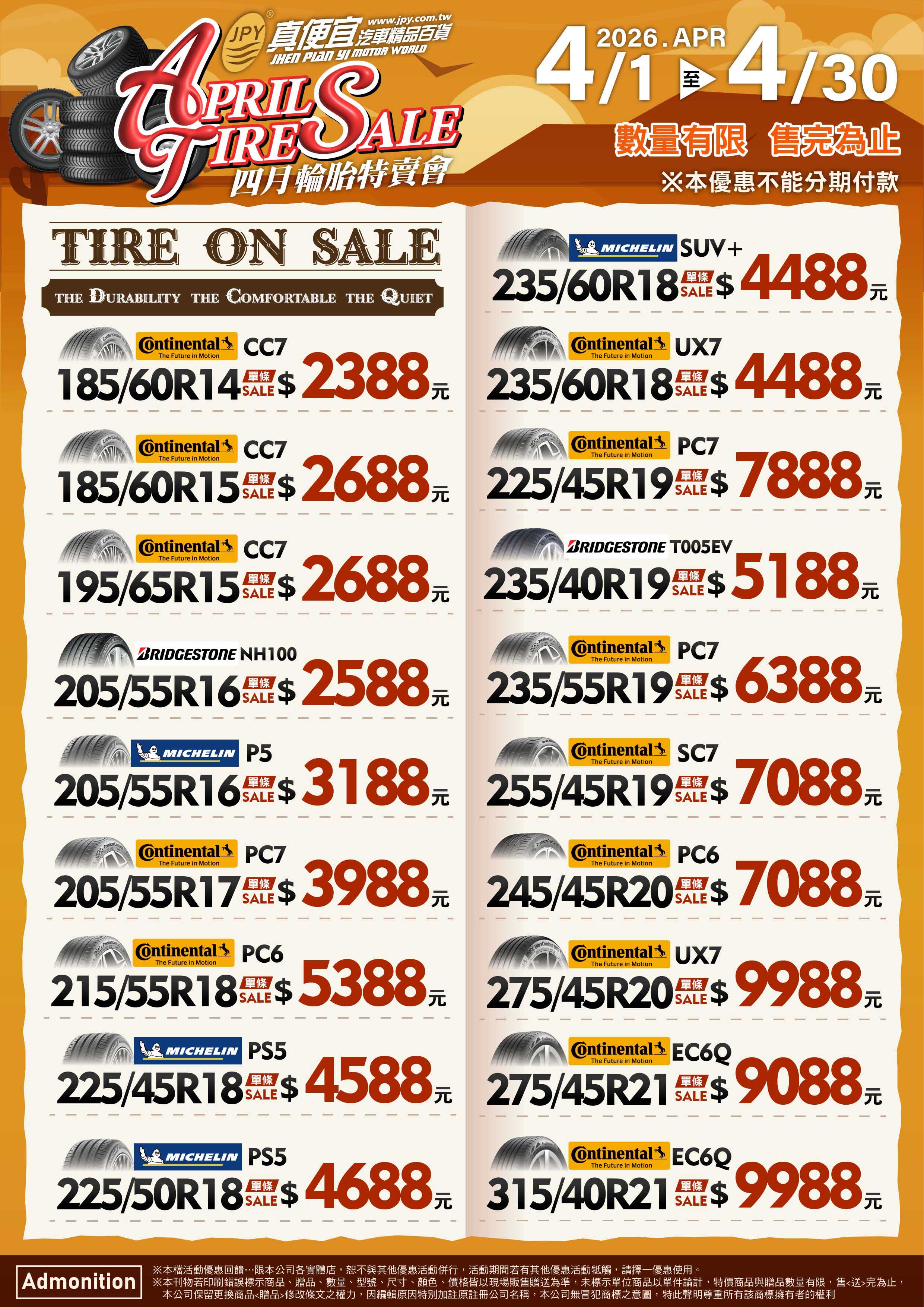 依輪胎總代理協約,特惠輪胎花紋
