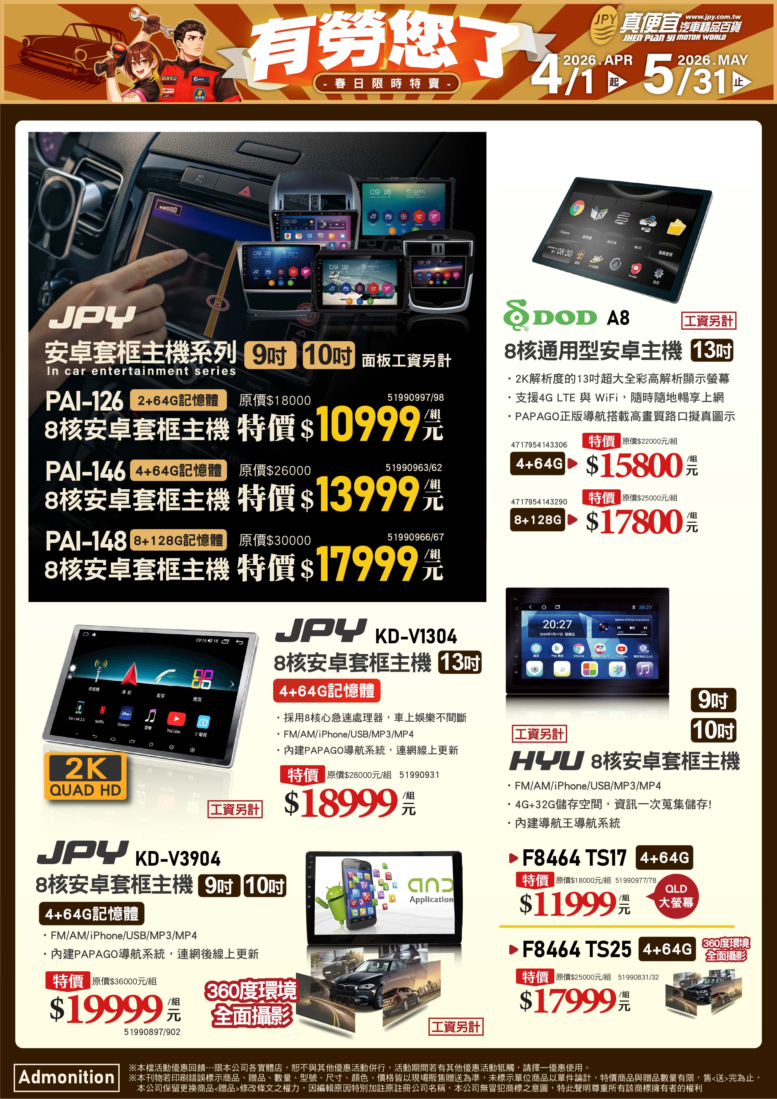 車用安卓音響主機、行車紀錄器、測速偵測器、數位3C、視聽影音、改裝精品、百貨化工等,都有優良的技師團隊作保修維護與門市人員服務,讓您與愛車均能享受最專業的服務。